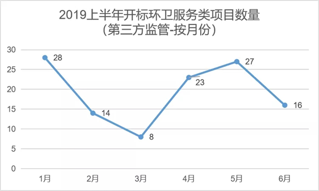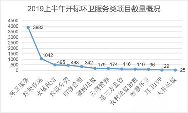 環(huán)境司南數(shù)據(jù)監(jiān)測(cè)表明:2019年上半年全國(guó)共開(kāi)標(biāo)各類(lèi)環(huán)衛(wèi)服務(wù)類(lèi)項(xiàng)目(含標(biāo)段)6954個(gè),服務(wù)內(nèi)容涵蓋“環(huán)衛(wèi)服務(wù)、垃圾收運(yùn)、水域保潔、垃圾分類(lèi)、市容管理、餐廚垃圾(收運(yùn))、公廁管養(yǎng)、第三方監(jiān)管、農(nóng)村垃圾治理、智慧環(huán)衛(wèi)、環(huán)衛(wèi)PPP、大件垃圾”等12個(gè)細(xì)分領(lǐng)域。