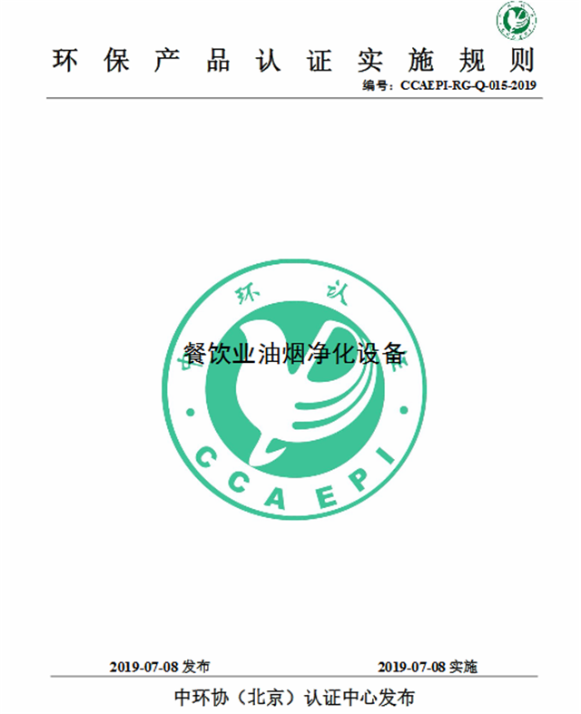 1、《環(huán)境保護(hù)產(chǎn)品認(rèn)證實(shí)施規(guī)則 餐飲業(yè)油煙凈化設(shè)備》(CCAEPI-RG-Q-015-2019)