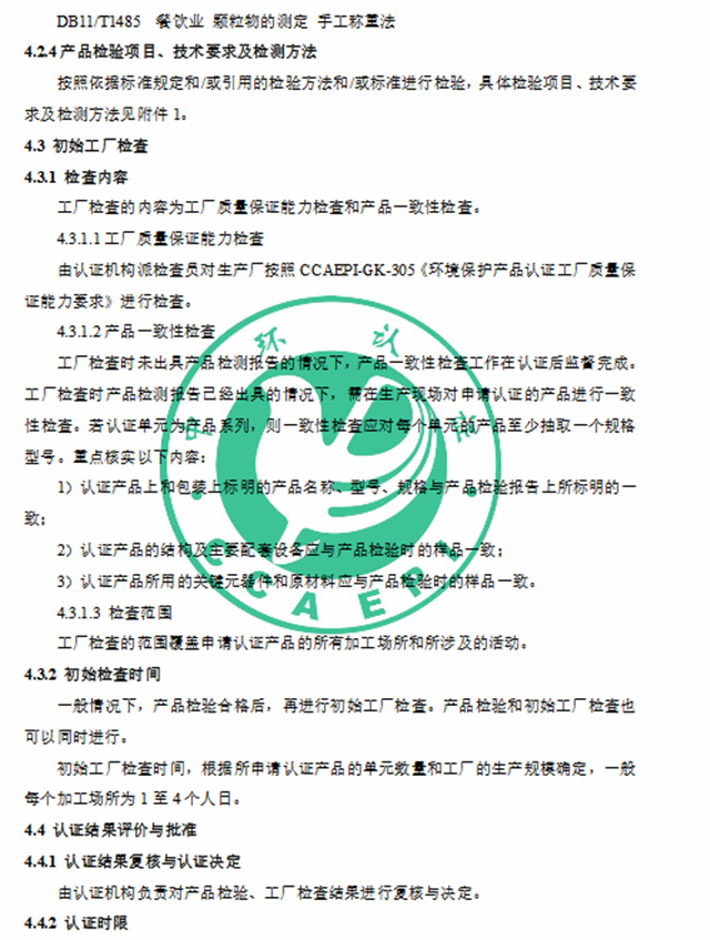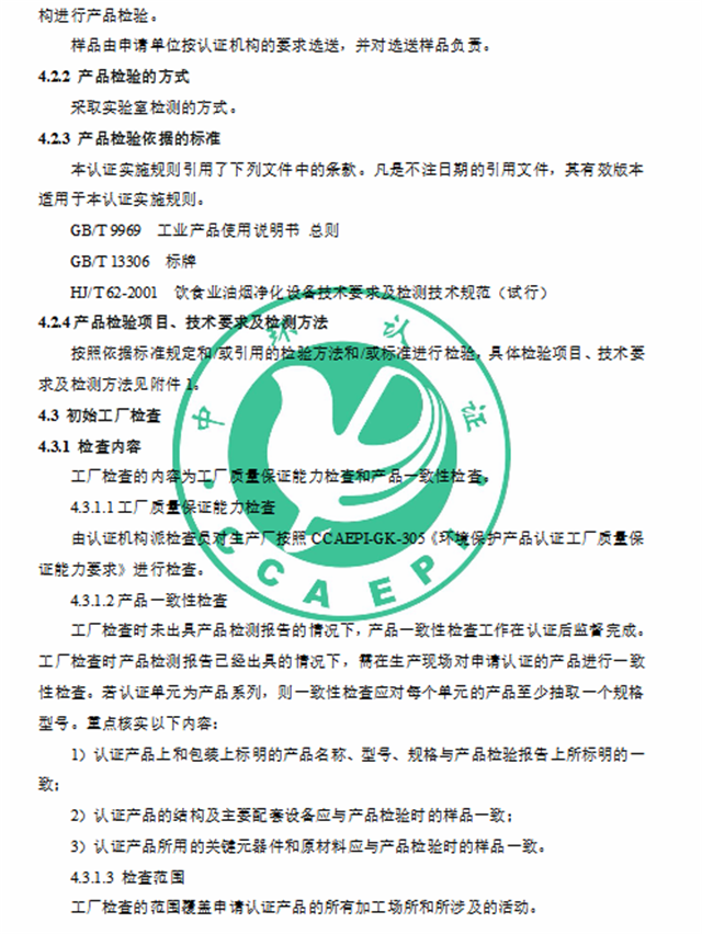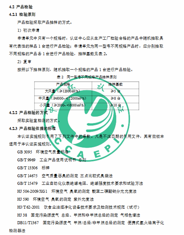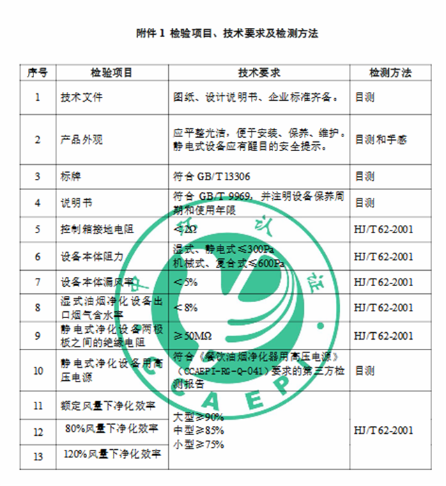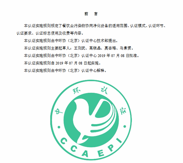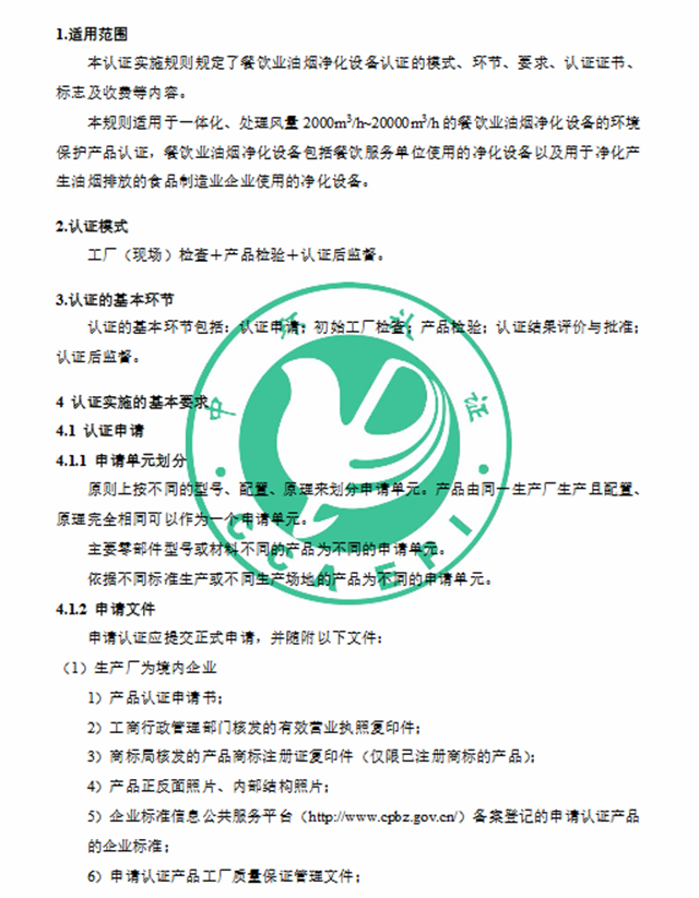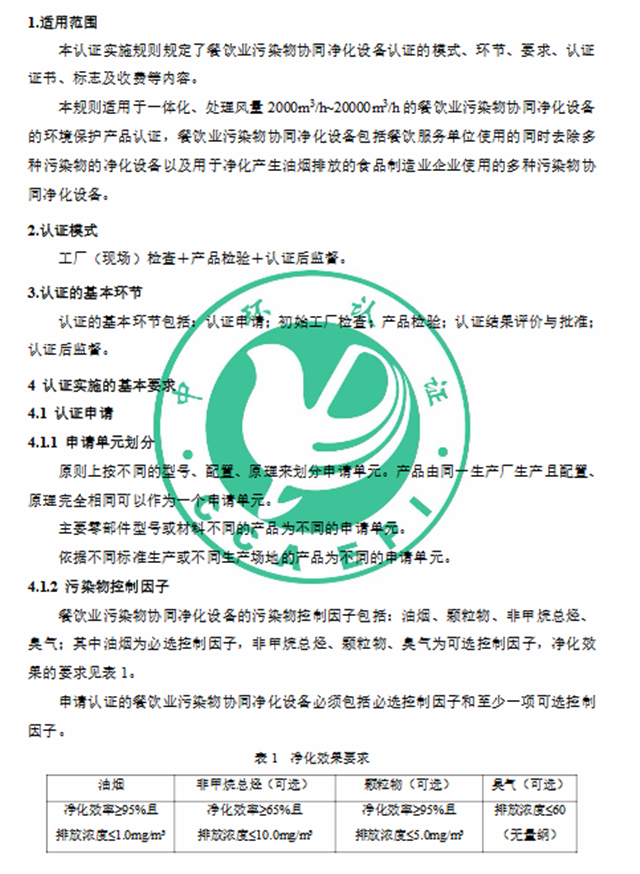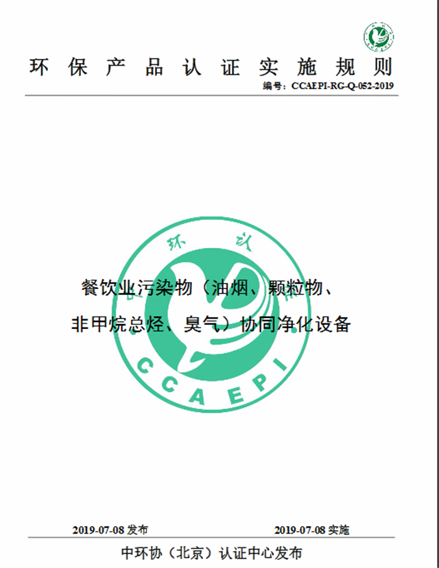 2、《環(huán)境保護(hù)產(chǎn)品認(rèn)證實(shí)施規(guī)則 餐飲業(yè)污染物(油煙、顆粒物、非甲烷總烴、臭氣)協(xié)同凈化設(shè)備》(CCAEPI-RG-Q-052-2019)