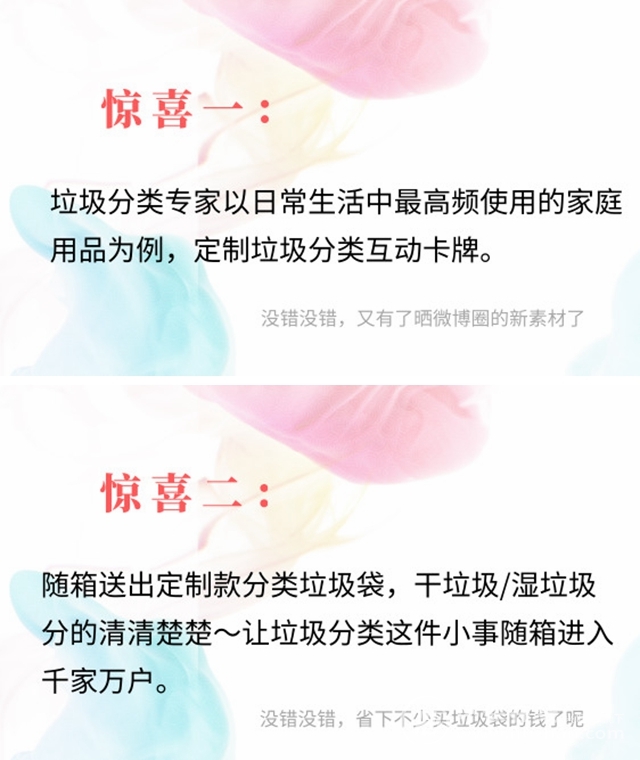 獨(dú)寵上海小伙伴可還行?說好的為了垃圾分類逃離上海呢!一份驚喜就把你收!買!了!不過港真,這波助力垃圾分類的操作也是要雙擊666,簡(jiǎn)單實(shí)用真“驚喜”,畫面精美忍不住看一眼再看一眼。