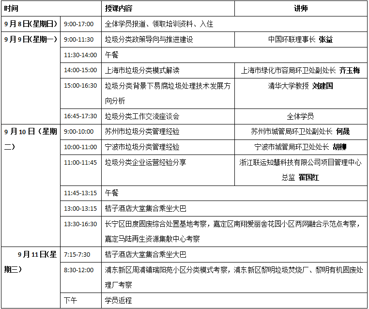 在此背景下,中國(guó)環(huán)聯(lián)擬2019年9月8日11日上海市舉辦第一期垃圾分類培訓(xùn),培訓(xùn)內(nèi)容包括垃圾分類政策導(dǎo)向與推進(jìn)建設(shè)、垃圾分類實(shí)施方案與實(shí)務(wù)操作、上海等相關(guān)城市垃圾分類模式分析與經(jīng)驗(yàn)分享等,并組織實(shí)地參觀考察。