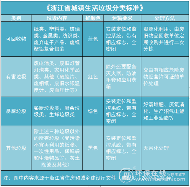 別慌,生活垃圾分類地方標(biāo)準(zhǔn)來啦。8月21日,浙江省住建廳發(fā)布了《浙江省城鎮(zhèn)生活垃圾分類標(biāo)準(zhǔn)》(簡稱“標(biāo)準(zhǔn)”),內(nèi)容規(guī)范了垃圾類別、分類投放、分類收集、分類運(yùn)輸和分類處理,這是中國第一部城鎮(zhèn)生活垃圾分類地方性標(biāo)準(zhǔn),計劃于2019年11月1日正式施行。