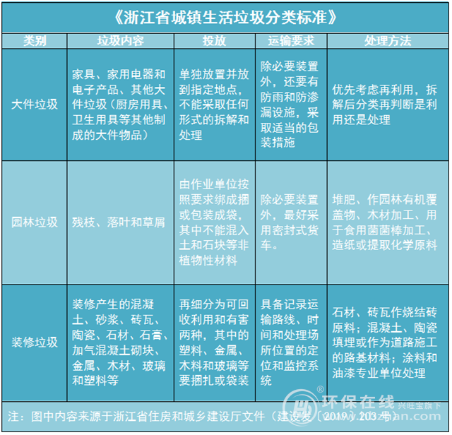 除上述四類垃圾外,《標(biāo)準(zhǔn)》還針對大件垃圾、園林垃圾和裝修垃圾作出了分類投放、分類處置的具體規(guī)范,在投放和處理時要按照相關(guān)要求進(jìn)行細(xì)化處理。