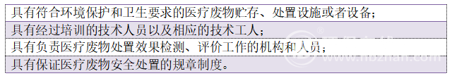 2005年出臺(tái)的《醫(yī)療廢物管理?xiàng)l例》中明確規(guī)定,從事醫(yī)療廢物集中處置活動(dòng)的單位,應(yīng)當(dāng)向縣級(jí)以上人民政府環(huán)境保護(hù)行政主管部門申請(qǐng)領(lǐng)取經(jīng)營許可證;未取得經(jīng)營許可證的單位,不得從事有關(guān)醫(yī)療廢物集中處置的活動(dòng)。并且,醫(yī)療廢物集中處置單位,應(yīng)當(dāng)符合下列條件: