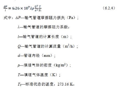 6.2.4 填埋氣體輸氣管道單位長度摩擦阻力損失可按式6.2.4 計算: