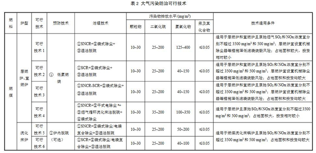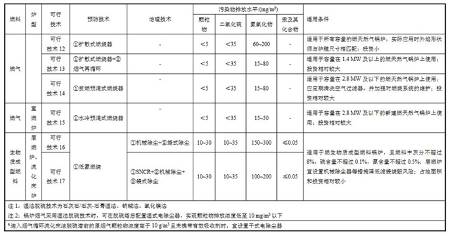 鍋爐排污單位選擇污染防治可行技術(shù)時(shí)宜綜合考慮許可排放限值、燃料性質(zhì)、爐型,及實(shí)際應(yīng)用情況等。具體的大氣污染防治可行技術(shù)參見表2。