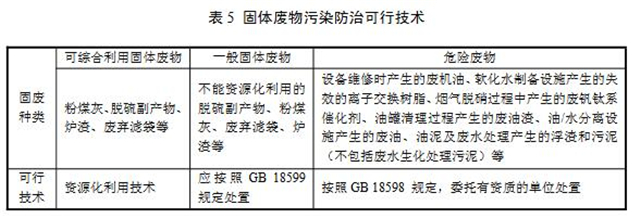 固體廢物污染防治可行技術(shù)參見表5。