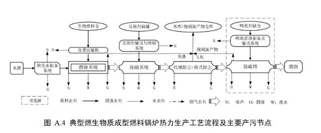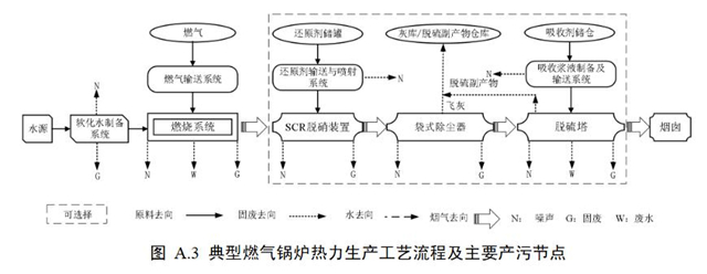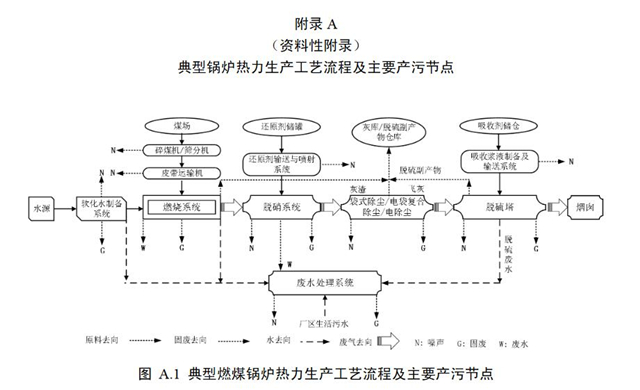 4.1.1鍋爐熱力生產(chǎn)工藝主要包括燃燒系統(tǒng)、貯存系統(tǒng)、制備與輸送系統(tǒng)、輔助系統(tǒng)和污染防治系統(tǒng)等。典型鍋爐熱力生產(chǎn)工藝流程圖參見附錄A。