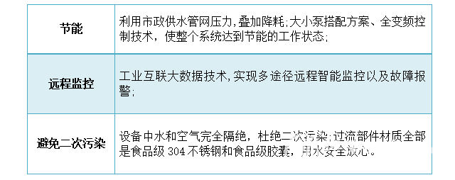 設(shè)備前端采用了無(wú)負(fù)壓流量控制器,能夠隨時(shí)監(jiān)測(cè)市政供水管網(wǎng)的壓力,根據(jù)供水管網(wǎng)壓力的變化調(diào)節(jié)穩(wěn)壓補(bǔ)償罐入口流量, 確保對(duì)市政管網(wǎng)不產(chǎn)生負(fù)壓,同時(shí)滿足用戶的用水需求,并且設(shè)備還具有節(jié)能、遠(yuǎn)程監(jiān)控、避免二次污染的功能特別。