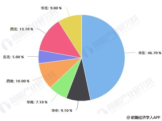 2017年中國危險(xiǎn)廢物產(chǎn)生量區(qū)域分布占比統(tǒng)計(jì)情況