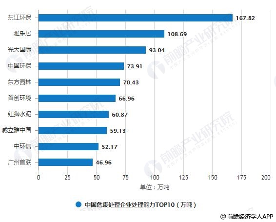 2018年中國危廢處理企業(yè)處理能力TOP10統(tǒng)計(jì)情況