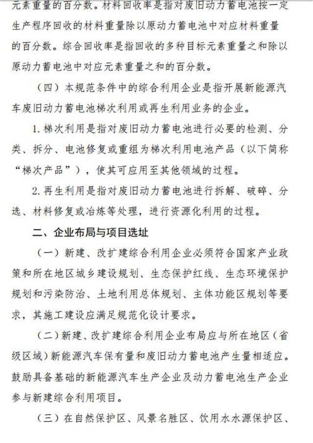 近日,節(jié)能與綜合利用司修訂了《新能源汽車廢舊動力蓄電池綜合利用行業(yè)規(guī)范條件(修訂征求意見稿)》和《新能源汽車廢舊動力蓄電池綜合利用行業(yè)規(guī)范公告管理暫行辦法(修訂征求意見稿)》,具體內(nèi)容見下文: