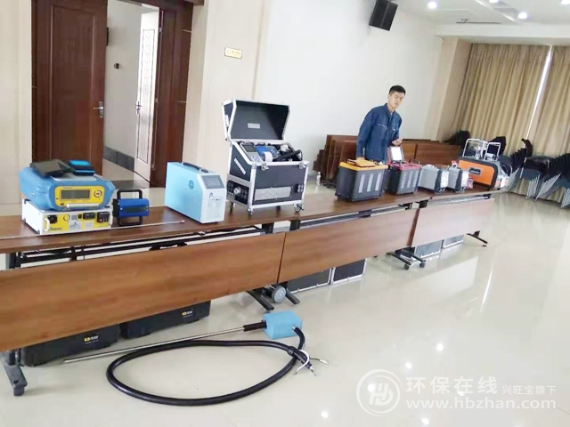 圖中(左一)為PF—300便攜式甲烷/總烴和非甲烷總烴測(cè)試儀