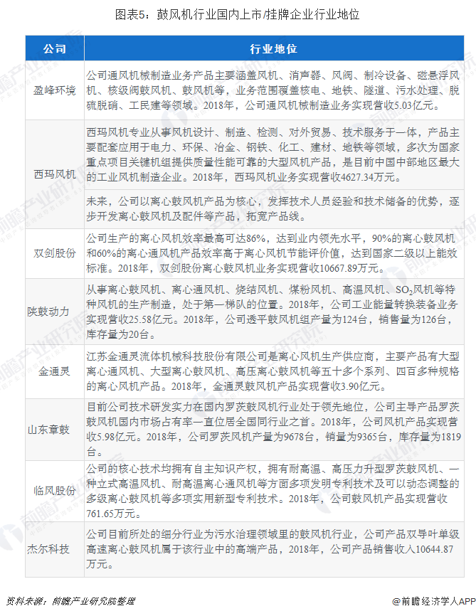 截止到2019年8月,涉及到鼓風機業(yè)務(wù)的上市/掛牌公司共有8家。以陜鼓動力為代表的上市領(lǐng)先企業(yè),無論是工業(yè)總產(chǎn)值還是主營業(yè)務(wù)收入等指標,占據(jù)行業(yè)的權(quán)重均較大,說明行業(yè)集中度較高。