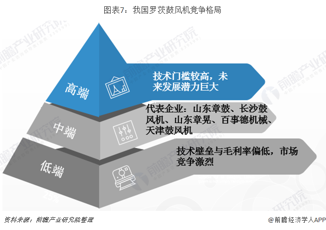 低端產(chǎn)品市場技術(shù)壁壘與毛利率偏低,市場競爭激烈,國內(nèi)大多數(shù)羅茨鼓風機生產(chǎn)廠商主要從事L系列羅茨鼓風機等低端產(chǎn)品的生產(chǎn)。