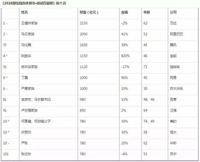 新奧集團(tuán)王玉鎖,玖龍紙業(yè)張茵,東方園林何巧女,錦江鈄正剛、尉雪鳳,億利資源王文彪,桑德文一波,碧水源文劍平,重慶財(cái)信盧生舉……10月13日,《2016胡潤百富榜》發(fā)布,據(jù)中國水網(wǎng)統(tǒng)計(jì),有十余家環(huán)保企業(yè)的掌舵人榮登榜單前500強(qiáng)。