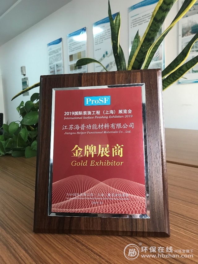 江蘇海普的特種吸附材料和電鍍廢水處理技術(shù)在展會(huì)上吸引了許多電鍍相關(guān)環(huán)保需求企業(yè)的駐足,而海普也榮獲了組委會(huì)頒發(fā)的“金牌展商”榮譽(yù)稱號(hào)。
