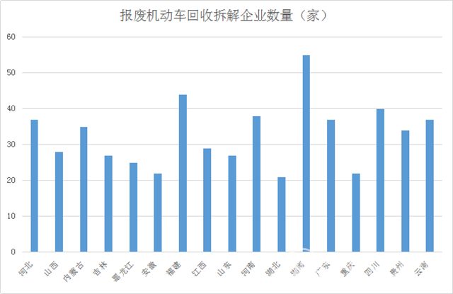 根據(jù)商務(wù)部公開(kāi)的全國(guó)報(bào)廢機(jī)動(dòng)車回收拆解企業(yè)數(shù)據(jù)來(lái)看,一共是732家企業(yè)。來(lái)看一下,哪些省市的報(bào)廢機(jī)動(dòng)車回收拆解企業(yè)較多。