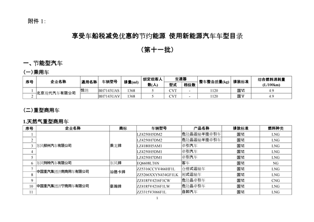 1.享受車船稅減免優(yōu)惠的節(jié)約能源 使用新能源汽車車型目錄(第十一批)
