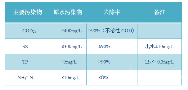 誠如磁分離水體凈化工藝首先通過截留設(shè)施的格柵攔截較大的垃圾和污物,對污水進行預(yù)處理。在初步降低污水中的無機顆粒物質(zhì)含量后,通過加磁混合反應(yīng)和磁分離系統(tǒng)以期同步實現(xiàn)快速去除水中SS、降低水中TP和不溶性COD含量,直至出水經(jīng)過后端處理向外排放。主要污染物去除效果參考下圖: