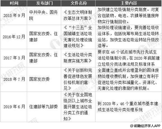 2015-2019年中國垃圾分類相關政策匯總情況