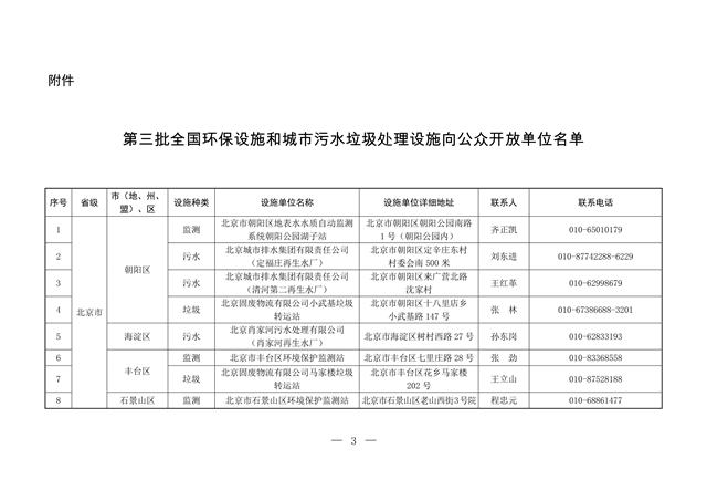 附件:第三批全國環(huán)保設(shè)施和城市污水垃圾處理設(shè)施向公眾開放單位名單