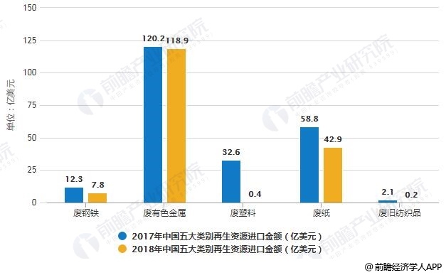 2017-2018年中國五大類別再生資源進(jìn)口金額統(tǒng)計情況