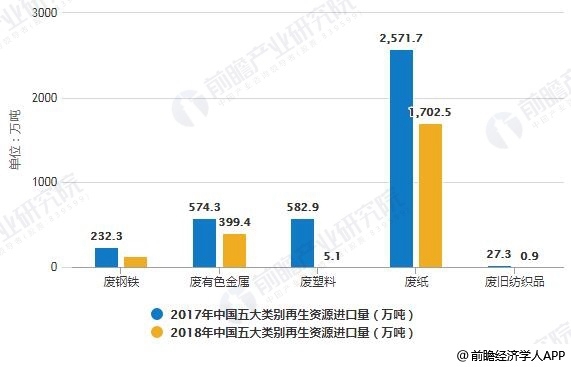2017-2018年中國五大類別再生資源進(jìn)口量統(tǒng)計情況