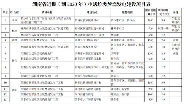 到2020年,湖南全省生活垃圾焚燒發(fā)電處理量占無害化處理量的40%。