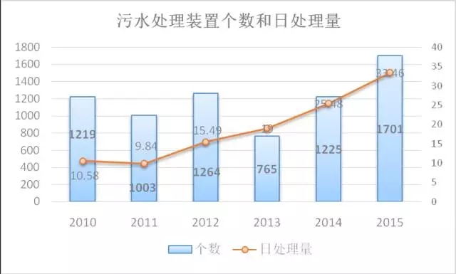 根據以上住建部統(tǒng)計數(shù)據看出,至2015年底,我國農村污水處理進展明顯滯后于城市,進行生活污水處理的鄉(xiāng)的比例只有7.1%,行政村為11.4%,有近九成鄉(xiāng)村未進行污水處理設施建造。而在污水處理中,集中式污水處理廠的建設明顯落后于分散式污水處理裝置,污水處理裝置的數(shù)量和日處理量都超過污水處理廠,分別為1701個和361個,處理量為33.46萬立方米/日和19.30萬立方米/日。但這些設施均不足以負擔農村日漸增長的污水排放體量!