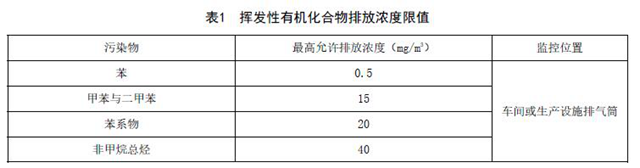 排氣筒揮發(fā)性有機(jī)化合物排放濃度限值應(yīng)符合表1規(guī)定。