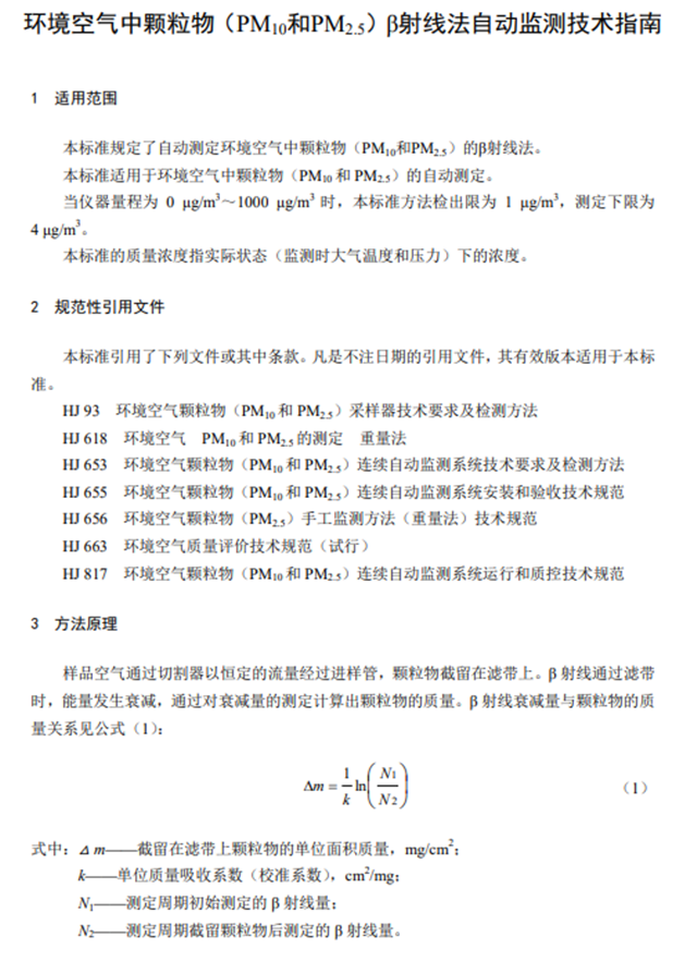 環(huán)境空氣中顆粒物(PM10和PM2.5)β射線法自動監(jiān)測技術(shù)指南(HJ1097-2020)