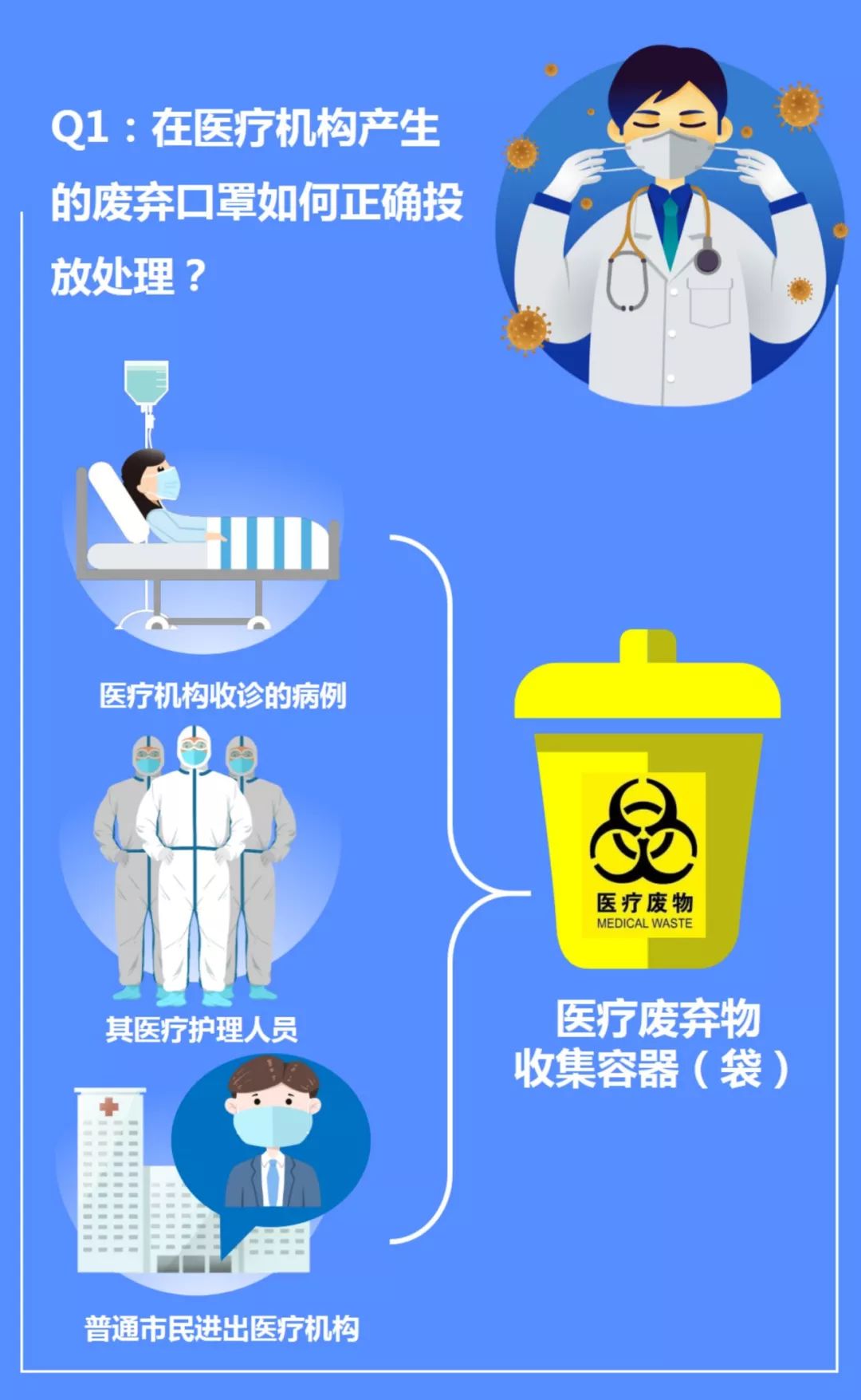 因日常工作或求醫(yī)問診等情況需要進出醫(yī)療機構公共區(qū)域的普通市民,建議也將廢棄口罩投入醫(yī)療機構設置的醫(yī)療廢棄物收集容器(袋)中,納入醫(yī)療廢棄物進行統(tǒng)一專項處置。