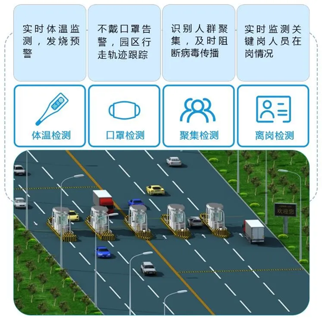 針對疫情防控,平臺增加疫情監(jiān)測子系統(tǒng),利用生物識別技術、熱成像測溫技術、視頻智能分析等技術手段,對出入口行人快速測量,及時發(fā)現(xiàn)體溫異常人員,執(zhí)行快速干預手段,防止病毒疫情在園區(qū)出現(xiàn)大范圍感染人員擴散的危險。