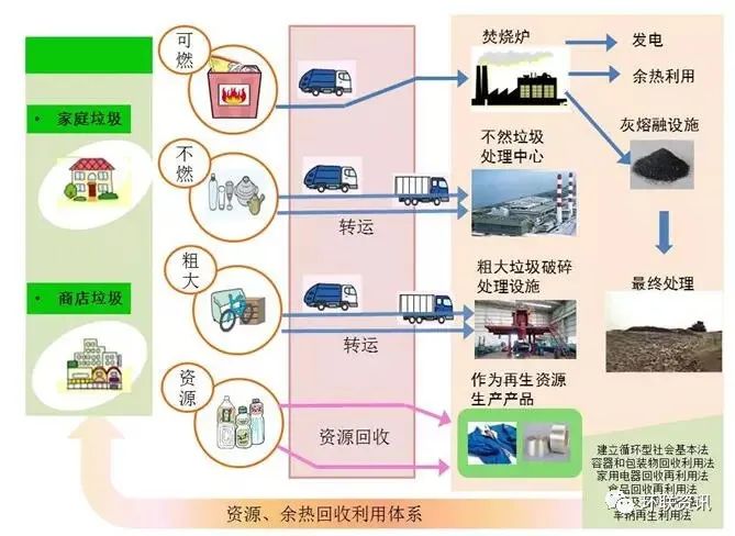日本政府逐漸意識到了問題的嚴(yán)重性,并切實(shí)有效地開展了一系列的應(yīng)對措施。從相關(guān)法律的制定,到民間的大力宣傳,再到設(shè)施設(shè)備的完善配備,日本政府走上了一條與垃圾處理抗?fàn)幍降椎摹安粴w路”。而事實(shí)證明,他們的的確確做到了,而且是完美極致的。