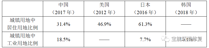 表3 中美日韓城鎮(zhèn)用地結構差異