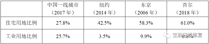 另一方面,土壤修復產業(yè)要解決的問題是實現土地利用和人體健康的協調統一,末段修復工作與前段預防、中段邊修復邊利用必須結合起來。目前國際上都非常重視維持工業(yè)化,工業(yè)企業(yè)對國民經濟的支柱作用日益凸顯。根據“澤平宏觀《中國土地資源稀缺嗎?》”報告,中國城鎮(zhèn)用地中的居住用地比例遠低于美日韓,而工業(yè)用地比例又遠高于三者;中國四大一線城市的住宅用地比例遠低于紐約、東京、首爾,而工業(yè)用地同樣遠高于三大代表性城市。在相當長一段時間內,工業(yè)用地占比較高的局面不會改變。如何既保證優(yōu)秀工業(yè)企業(yè)的良好經營,又實現土壤地下水環(huán)境質量的持續(xù)改善或高質量維持,是土壤修復產業(yè)面臨的重大命題。