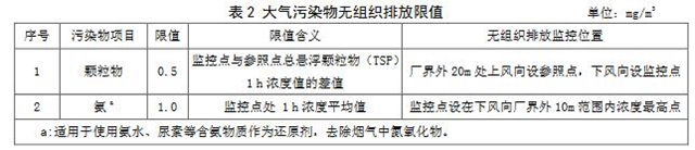 4.2.2自本標(biāo)準(zhǔn)實(shí)施之日起,平板玻璃工業(yè)企業(yè)及生產(chǎn)設(shè)施大氣污染物無(wú)組織排放監(jiān)控點(diǎn)濃度限值應(yīng)符合表2規(guī)定。