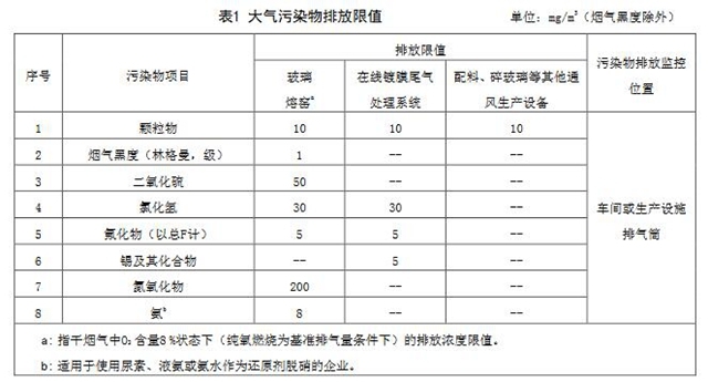 規(guī)定了玻璃熔窯煙氣中顆粒物、二氧化硫、氮氧化物排放限值,分別為10mg/m3、50mg/m3、200mg/m3;增加了氨逃逸控制指標(biāo),指標(biāo)限值為8mg/m3。加強(qiáng)了對(duì)大氣污染物無(wú)組織排放管控,廠界顆粒物排放限值由現(xiàn)行的1.0mg/m3變?yōu)?.5mg/m3;同時(shí)增加了無(wú)組織排放氨逃逸控制指標(biāo),排放限值為1.0mg/m3。