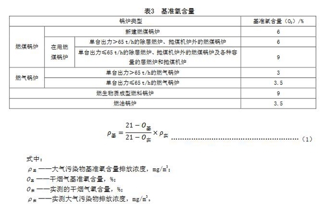 5.2大氣污染物基準(zhǔn)氧含量排放濃度折算方法實(shí)測(cè)的鍋爐顆粒物、二氧化硫、氮氧化物和汞及其化合物的排放濃度,必須按公式(1)折算為基準(zhǔn)氧含量排放濃度。鍋爐的基準(zhǔn)氧含量按表3的規(guī)定執(zhí)行。