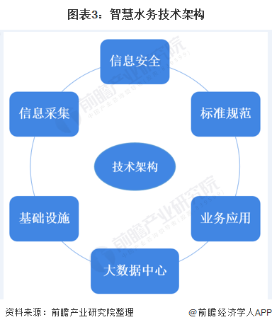 智慧水務的技術(shù)架構(gòu)包括信息安全、標準規(guī)范、業(yè)務應用、大數(shù)據(jù)重心、信息采集和基礎(chǔ)設(shè)施。其中,信息采集是智慧水務“感覺系統(tǒng)”,助力監(jiān)測網(wǎng)絡對涉水對象及其環(huán)境信息的感知和接受。