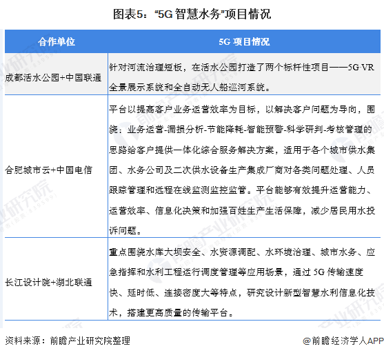 此外,各地水務集團在加快“5G+智慧水務”項目的落地和進程。例如,2019年7月,四川首個5G“智慧水務”項目亮相,項目中的5G VR全景展示系統(tǒng)和全自動無人船巡河系統(tǒng)引人矚目。