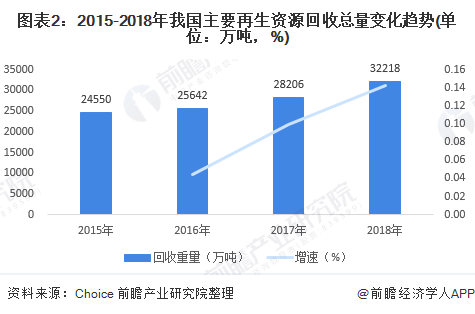2018年,我國主要再生資源回收總量已突破3億噸。隨著市場的逐步放開,我國再生資源行業(yè)已形成了較為完整的產(chǎn)業(yè)鏈。未來,“園區(qū)化”將是行業(yè)發(fā)展的新形態(tài)。