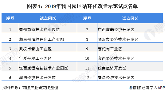 根據(jù)2019年4月17日國家發(fā)改委與財政部聯(lián)合發(fā)布的《關(guān)于2019年園區(qū)循環(huán)化改造示范試點和“城市礦產(chǎn)”示范基地驗收結(jié)果的公示》,現(xiàn)階段,共有12個園區(qū)循環(huán)化改造示范試點和4個“城市礦產(chǎn)”示范基地通過驗收。