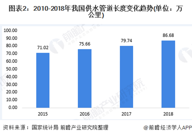 我國(guó)是水資源需求大國(guó)。目前,隨著我國(guó)城市供水量的逐年增長(zhǎng)、供水管道布局的日益復(fù)雜和水資源污染問(wèn)題,水務(wù)信息化建設(shè)急需提升。2018年,我國(guó)供水總量達(dá)614.60億噸,同比增長(zhǎng)3.51%;我國(guó)供水管道長(zhǎng)度達(dá)86.68萬(wàn)公里,同比增長(zhǎng)8.71%。