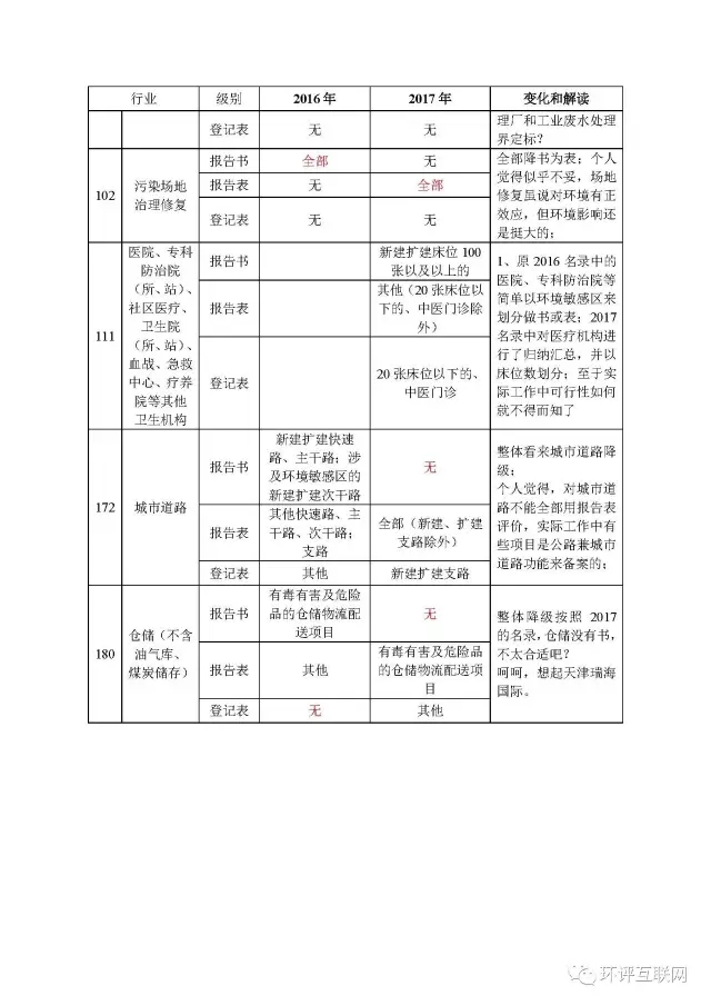 《建設(shè)項(xiàng)目分類(lèi)管理名錄》2017版逐項(xiàng)PK2016版