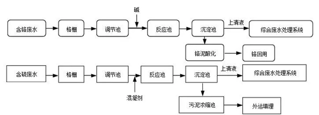 含鉻廢水:指在鉻鞣及鉻復鞣工序中產生的廢鉻液及相應的水洗工序廢水。