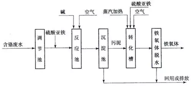 氣浮法:氣浮法用于處理鍍鉻廢水的原理是:在酸性的條件下硫酸亞鐵和六價鉻進行氧化還原反應,然后在堿性條件下產生絮凝體,在無數(shù)微細氣泡作用下使絮凝體浮出水面,使水質變清。