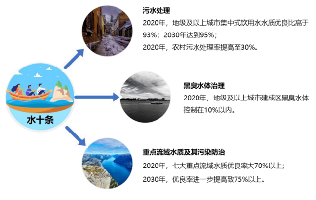 《水污染防治行動計劃 》,又稱“水十條”,是我國水環(huán)境治理政策建設(shè)的里程碑,標志著我國水環(huán)境治理開始從過去的污水治理、截污管網(wǎng)等末端治理模式,延伸至源頭控制、過程阻斷以及末端治理全過程協(xié)同的新模式,涉及污水治理、流域修復(fù)、城市排污管網(wǎng)建設(shè)、以及景觀建設(shè)等眾多行業(yè)領(lǐng)域。