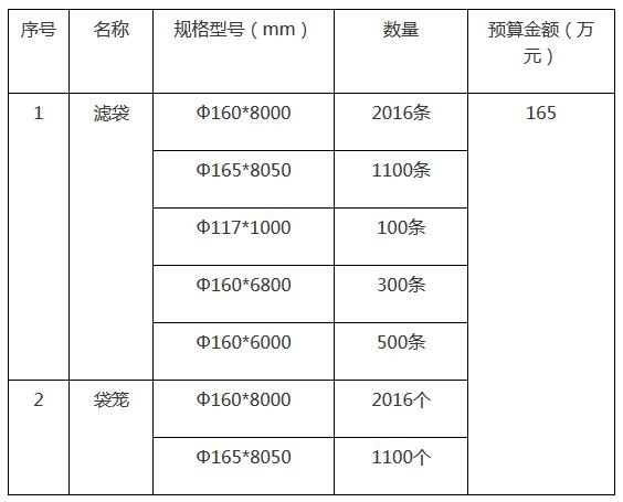 2.1項目名稱:黑龍江歲寶熱電有限公司除塵濾袋、袋籠采購項目;